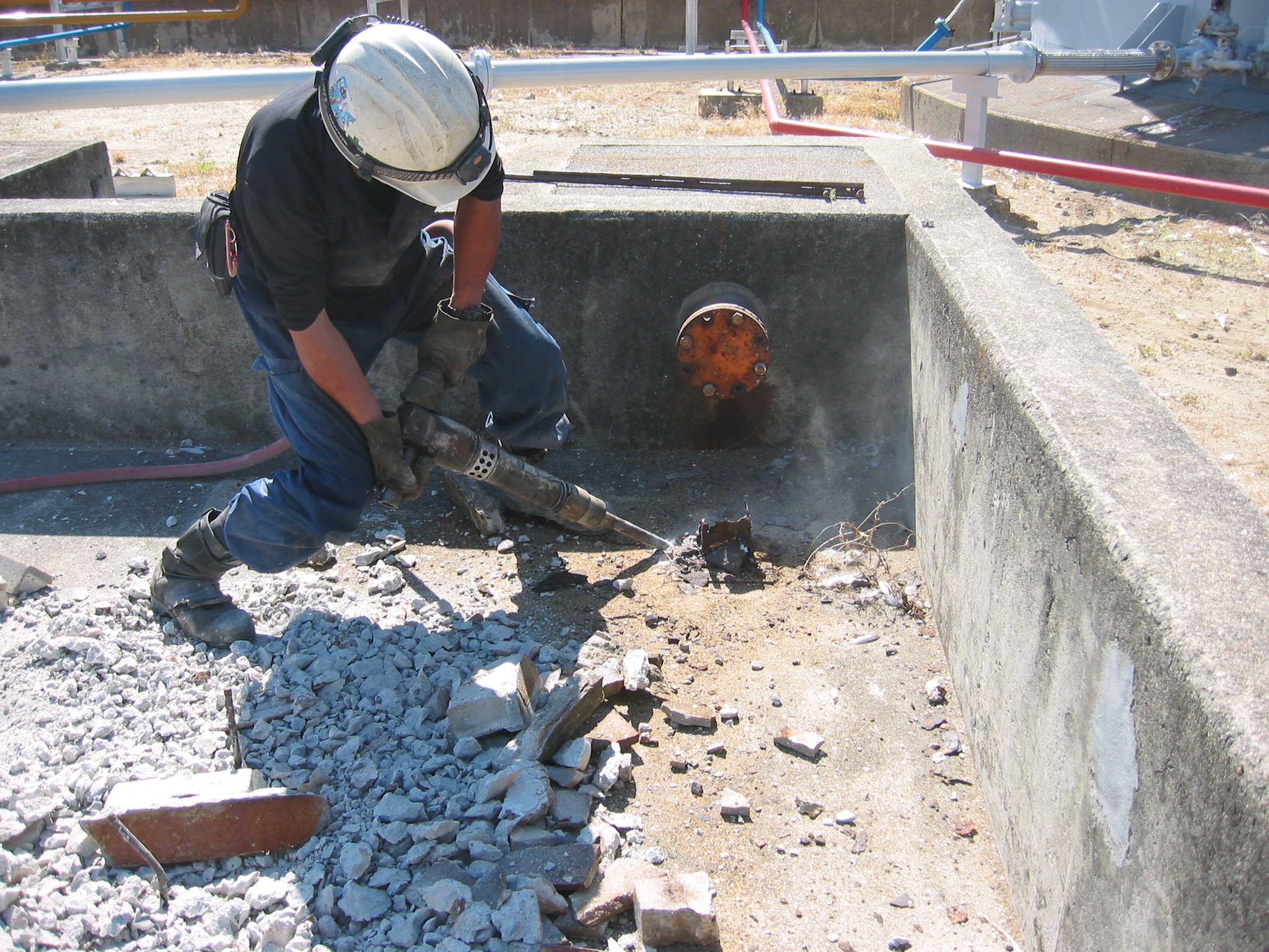取得前は、解体によって発生する埃や土煙の発生を減少させるための散水や、掃除等を行いながら、先輩たちがどのように解体をしているのかを見ながら勉強します。解体現場では一つの不注意が大きな事故につながるので一つ一つの作業に集中して取り組んでいます。